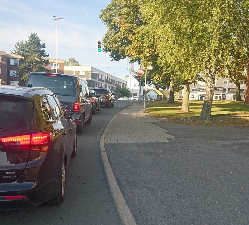 Hintergrund: mit grün versuchen PKW Richtung Saarner Straße auf den ca 25 m bis zur Kreuzung radelnde noch schnell zu überholen. Dies ist aufgrund unterschätzter Geschwindigkeit der radelnden oft gefährlich | | | 0 | 0 | 25.10.2024 | | Karte |