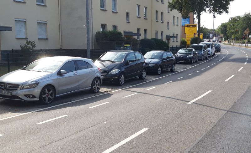 Da mit einer Aufgabe der Parkplätze am Fahrbahnrand nicht zu rechnen ist (starker Protest der autofahrenden Anwohner) lautet mein Vorschlag.