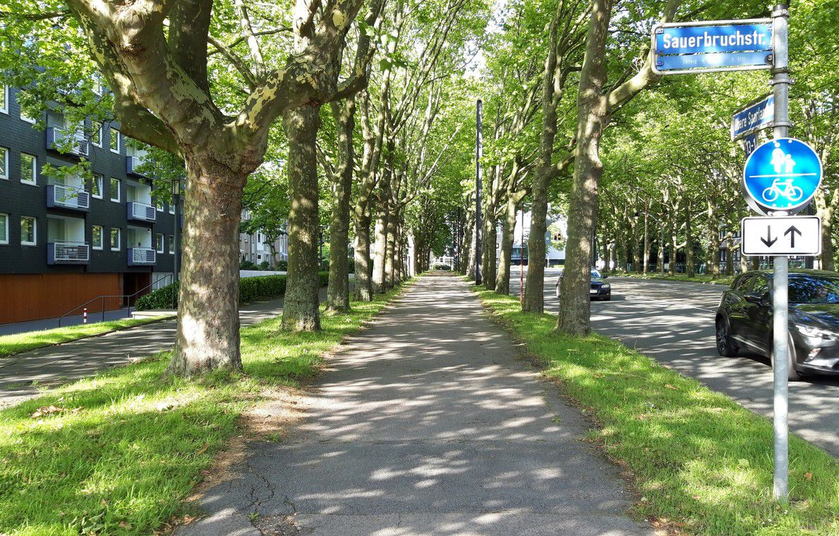 Der Nachbarsweg ist laut RVR eine wichtige Radverbindung, jedoch weist er bei erlaubten 50 km/h keine gesicherte Radinfrastruktur auf. Daher dient der Lothringer Weg als sichere Alternative.